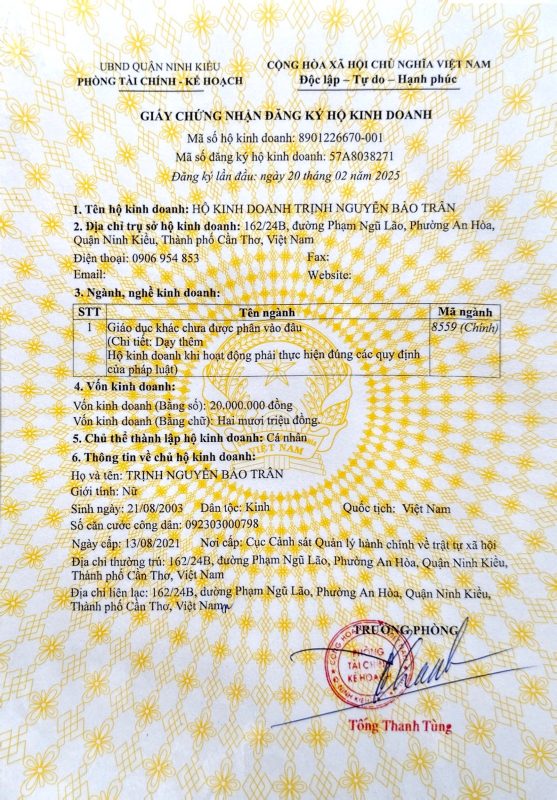 Trung tâm đăng ký kinh doanh theo đúng quy định:
